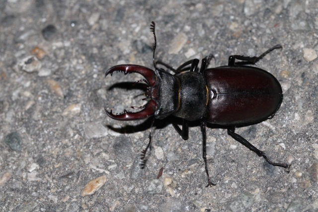 Le Lucane cerf-volant est le plus grand coléoptère d’Europe ! Sa taille varie énormément allant de 35 à 85 mm chez les mâles et de 20 à 50 mm chez les femelles. Les larves de ce coléoptère sont saproxylophages (elles consomment du bois mort) et se développent principalement sur les chênes. Les adultes ont une activité crépusculaire et nocturne. Son vol lourd et bruyant nous permet de mieux les trouver. C’est au cours des belles soirées d’été que les rencontres avec ce géant sont les plus fréquentes. Les mâles se reconnaissent par leurs belles mandibules si particulières plus au moins développées pour combattre tandis que les femelles ne disposent que de petites mandibules pour broyer le bois.