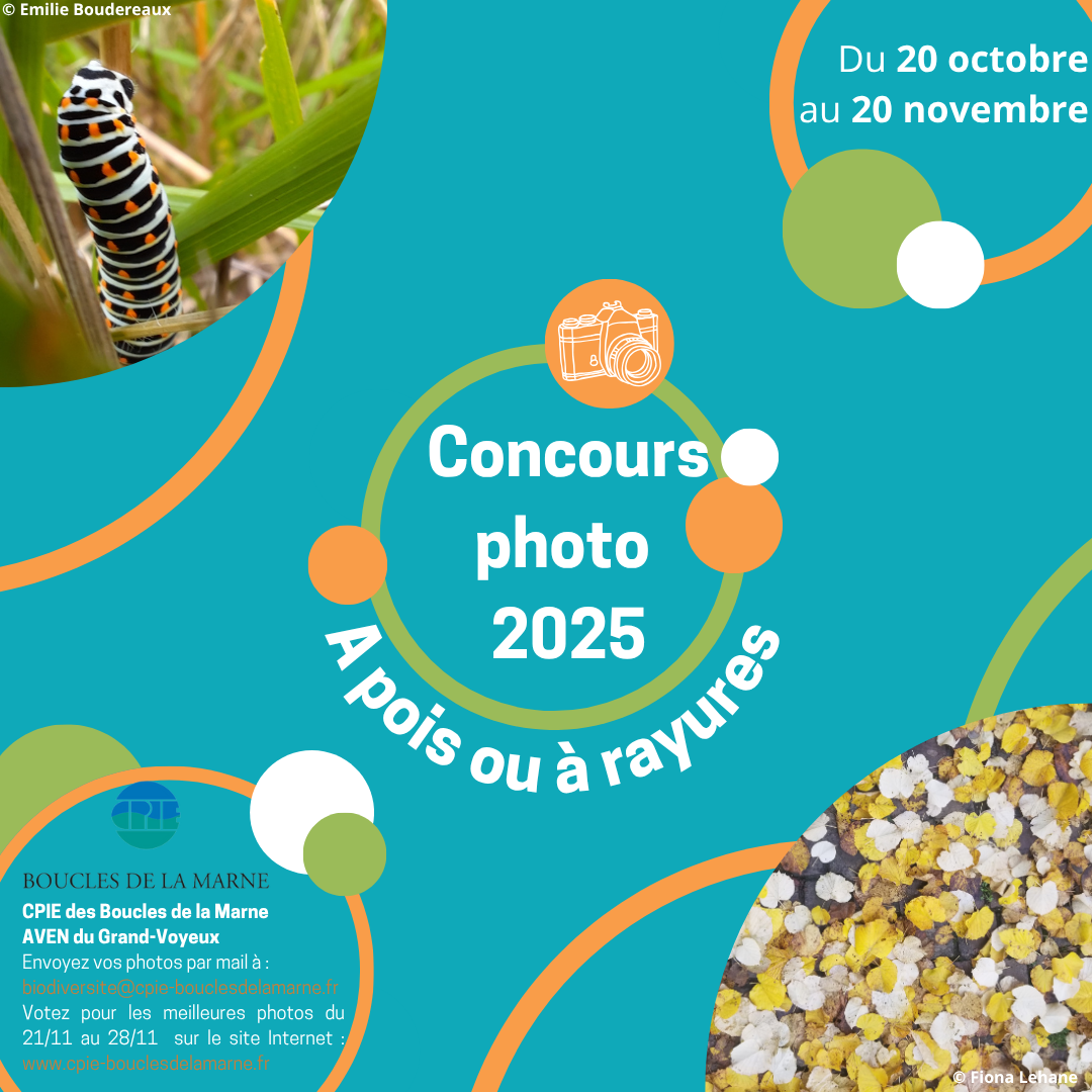 Cette année encore le CPIE des Boucles de la Marne organise son concours photo ! Nous vous proposons pour thème « A pois ou à rayures ». Vous avez jusqu’au jeudi 20 novembre 2025 pour proposer un maximum de 2 photos. Retrouvez les modalités de participation complètes sous ce lien.